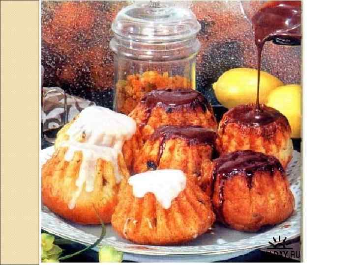 ФАКТОРЫ, ФОРМИРУЮЩИЕ КАЧЕСТВО Технология изготовления изделий включает стадии: Приготовление теста Выпечка Отделка v Тесто для ромовой баба приготавливают на прессованных дрожжах безопарным или опарным способом. v Выпекают в конусообразных, гладких или гофрированных формах. v Готовый полуфабрикат охлаждают в формах в течение 2. . . 3, затем освобождают из форм и выстаивают в течение 6. . . 8 ч. v После этого изделия пропитывают ароматизированным сиропом и покрывают верхнюю и боковую поверхности сахарной глазурью. v Узкая часть изделий покрывается блестящей белой или цветной помадой.
