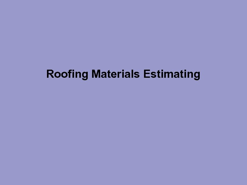 Roofing Materials Estimating
