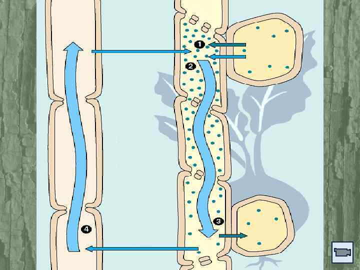 По судинам і трахеїдам вода і розчинені в ній мінеральні солі рухаються від коренів до надземних частин рослини. Судини і трахеїди, крім провідної, забезпечують ще й опорну функцію. клітини клітинна паренхіми стінка судини прилипання судини повітряні проміжки зв’язок молекула води клітина продиху Клітина судини продих молекула води