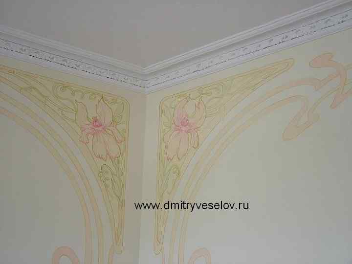 Роспись стен акриловыми красками Ее преимущества очевидны - она легко наносится, не имеет запаха, быстро высыхает и позволяет достичь изумительных изобразительных эффектов. Роспись, выполненная акрилом, не нуждается в особом уходе, и может наноситься практически на любую обезжиренную поверхность. Кроме того акрил позволяет работать одновременно с другими видами красок в смешанных техниках. От темперных и масляных красок акрил отличается повышенной прочностью, эластичностью и светостойкостью, что значительно расширяет его технические возможности. Акриловые краски превосходно передают игру света, визуально увеличивают объем изображения и предоставляют возможность фактурной техники