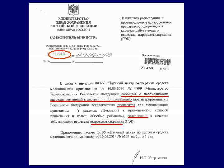 • • • Информация для медицинских работников Вследствие риска поражения почек и повышенной смертности, растворы ГЭК не должны впредь применяться у больных с сепсисом, ожогами и у пациентов в критическом состоянии. Впредь растворы ГЭК следует применять только для лечения гиповолемии вследствие кровопотери, когда переливание одних кристаллоидов оказывается недостаточным. В настоящее время нет качественных долгосрочных данных о безопасности пациентов, подвергаемых хирургическим вмешательствам и пострадавших с травмами. Ожидаемый эффект лечения должен быть тщательно сопоставлен с неясностями относительно безопасности в отдаленные сроки, наряду с оценкой возможности использования других методов лечения. Будут предприняты дополнительные исследования применения растворов ГЭК у пациентов с травмой и при плановых операциях. Растворы ГЭК следует применять в минимально эффективных дозах и в течение кратчайшего периода времени. Лечение должно проходить при непрерывном гемодинамическом мониторинге с тем, чтобы инфузию прекратить как только будут достигнуты приемлемые гемодинамические показатели. В настоящее время растворы ГЭК противопоказаны пациентам с нарушениями функции почек и при почечно-заместительной терапии. Введение ГЭК должно быть прекращено при первых признаках повреждения почек. Возросшая потребность в почечно-заместительной терапии была отмечена вплоть до 90 дней после назначения ГЭК. Растворы ГЭК противопоказаны при тяжелой коагулопатии. Введение растворов ГЭК должно быть прекращено при первых признаках коагулопатии. При повторном назначении следует тщательно мониторировать параметры гемокоагуляции.