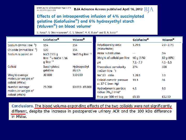 Больные и добровольцы по разному реагируют на вливание кристаллоидов • Клиренс кристаллоидов во время операции и анестезии составляет всего 10 -20% от наблюдаемого у добровольцев, находящихся в сознании. • Кристаллоиды покидают внутрисосудистое пространство и эквилибрируются в интерстиции в течение 20 -30 минут. Hahn RG Anesth Analg 2007; 105: 304