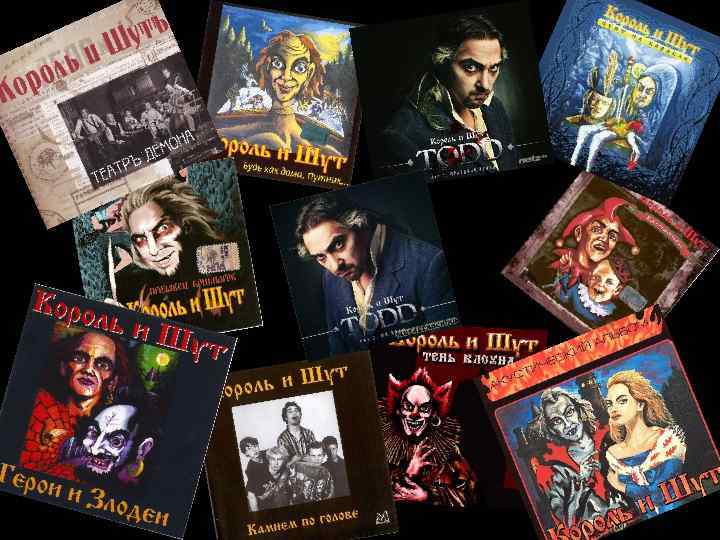 Альбомы группы 1. Будь как дома, путник-1994 2. Камнем по голове- 1996 3. Король и Шут-1997 4. Акустический альбом 1998 5. Ели мясо мужики-1999 6. Герои и Злодеи-2000 7. Как в старой сказке-2001 8. Жаль, нет ружья-2002 9. Мертвый Анархист-2003 10. Бунт на корабле-2004 11. Продавец Кошмаров-2006 12. Тень Клоуна-2008 13. Театр Демона-2010 14. TOOD. Акт 1. Праздник Крови 2011 15. TOOD. Акт 2. На краю-2012