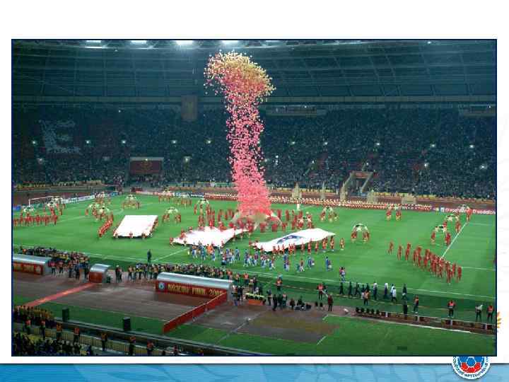 ОРГАНИЗАЦИЯ СОРЕВНОВАНИЙ В РОССИИ В России успешно проведены крупные международные соревнования: • чемпионат мира ФИФА среди женщин (до 20 лет); • финал Лиги чемпионов УЕФА; • чемпионат Европы по мини-футболу среди молодежных команд.