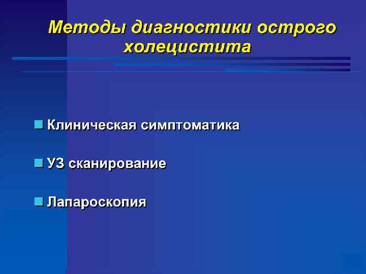 Клиническая симптоматика острого холецистита Симптомы острого холецистита n Специфические симптомы n Симптомы воспаления брюшины n Ортнера-Грекова n Щеткина-Блюмберга n Мюсси. Георгиевского n Воскресенского n Мерфи n Кера