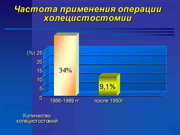 Послеоперационные осложнения у больных с острым холециститом (%) 25 20 15 10 5 0 2, 5% Операция до 72 часов n общие n местные 11, 4% 7, 2% Операция после 72 часов