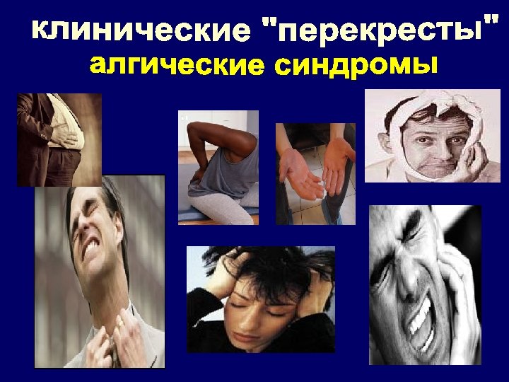 1. Острые ургентного характера боли 2. Болевые синдромы тесно связанные с конверсионным моторным дефектом как по локализации, так и по динамике 3. Локализация боли в оральной или аногенитальной областях 4. Диффузные боли как основной фактор инвалидизации больного при отсутствии соматических причин для их возникновения