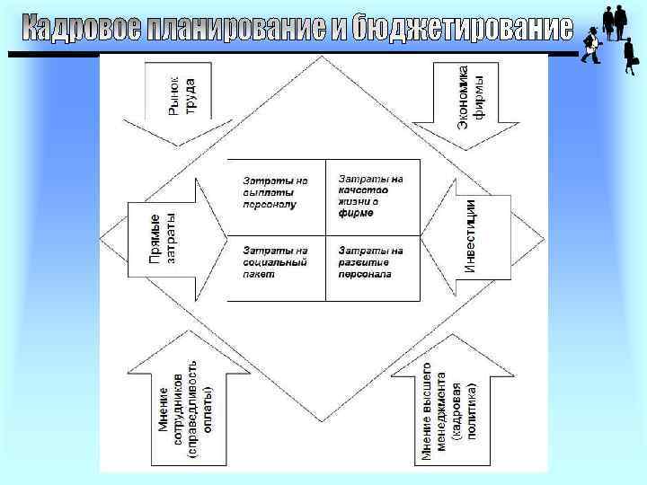 СИСТЕМА КАДРОВОГО ПЛАНИРОВАНИЯ ВНЕШНЯЯ СРЕДА РАЗВИТИЕ, ОПАСЕНИЯ, ОГРАНИЧЕНИЯ Социокультурная Экономическая Правовая Технологическая Информационная ПРОМЕЖУТОЧНАЯ СИСТЕМА (поставщики, заказчики, союзы работодателей, общественный структуры и т. п. ) ЦЕЛИ, ОПАСЕНИЯ, ИНТЕРЕСЫ ПРОИЗВОДСТВЕННАЯ СИСТЕМА Развитие кадров Сохранение и мотивация кадров Определение потребности в кадрах ВНУТРЕННЯЯ СИСТЕМА Система информации о кадрах Привлечение кадров Использование кадров Кадровая логистика УПРАВЛЕНИЕ ПЕРСОНАЛОМ МИКРОСИСТЕМА ПЛАНИРОВАНИЕ КАДРОВ ВНУТРЕННЯЯ СИСТЕМА СИЛЬНЫЕ И СЛАБЫЕ СТОРОНЫ СИСТЕМЫ НОРМЫ, ЦЕННОСТИ, ПРИТЯЗАНИЯ, СПОСОБНОСТИ, ТОЧКИ ЗРЕНИЯ СОТРУДНИКОВ ЭКОНОМИЧЕСКИЕ, СОЦИАЛЬНЫЕ И ПРОЧИЕ ЦЕЛИ
