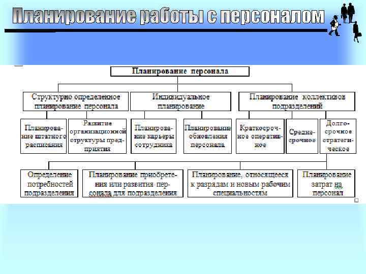 ОСНОВНЫЕ ВИДЫ КАДРОВОГО ПЛАНИРОВАНИЯ Планирование потребности в персонале Планирование производительности труда и показателей по труду Планирование привлечения персонала Планирование трудовой адаптации Планирование высвобождения или сокращения персонала Планирование использования персонала Планирование обучения персонала Планирование деловой карьеры, служебно-профессионального продвижения Планирование безопасности персонала и заботы о нем. Планирование расходов на персонал