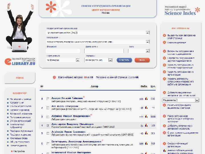 Информационноаналитическая система SCIENCE INDEX для организаций