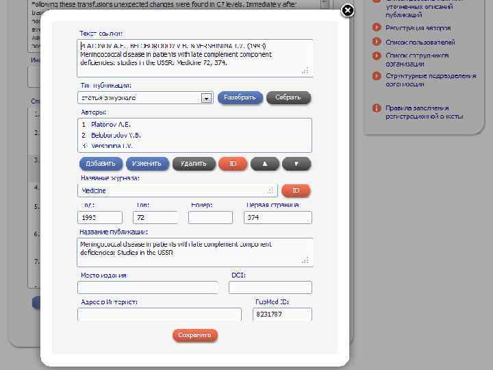 Российские научные издательства Контроль и дополнение информации авторами Контроль и дополнение информации научными организациями Web of Science Scopus Google Scholar РИНЦ Архивы российских журналов Базы данных патентов, книг, отчетов, диссертаций Аналитический блок SCIENCE INDEX