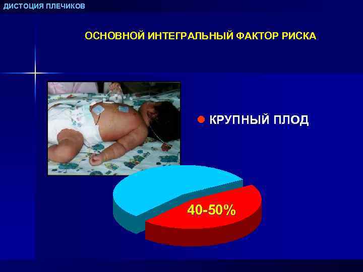 ДИСТОЦИЯ ПЛЕЧИКОВ ОСНОВНОЙ ИНТЕГРАЛЬНЫЙ ФАКТОР РИСКА l КРУПНЫЙ ПЛОД 40 -50%