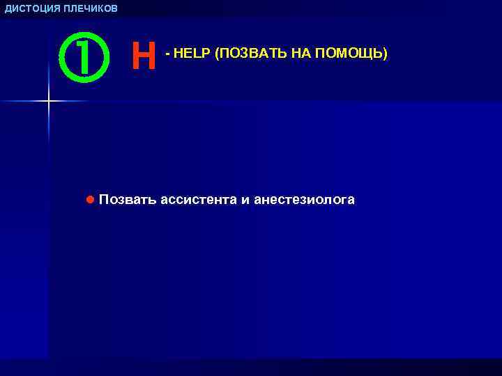 ДИСТОЦИЯ ПЛЕЧИКОВ H - HELP (ПОЗВАТЬ НА ПОМОЩЬ) l Позвать ассистента и анестезиолога