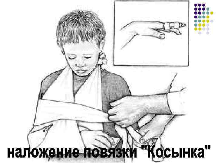 Первая помощь при переломах. Заключается в: l наложении шины из подручного материала, чтобы фиксировать места перелома и области суставов, расположенных выше и ниже его. l Внутрь пострадавшему дают амидопирин или анальгин и транспортируют в медпункт.