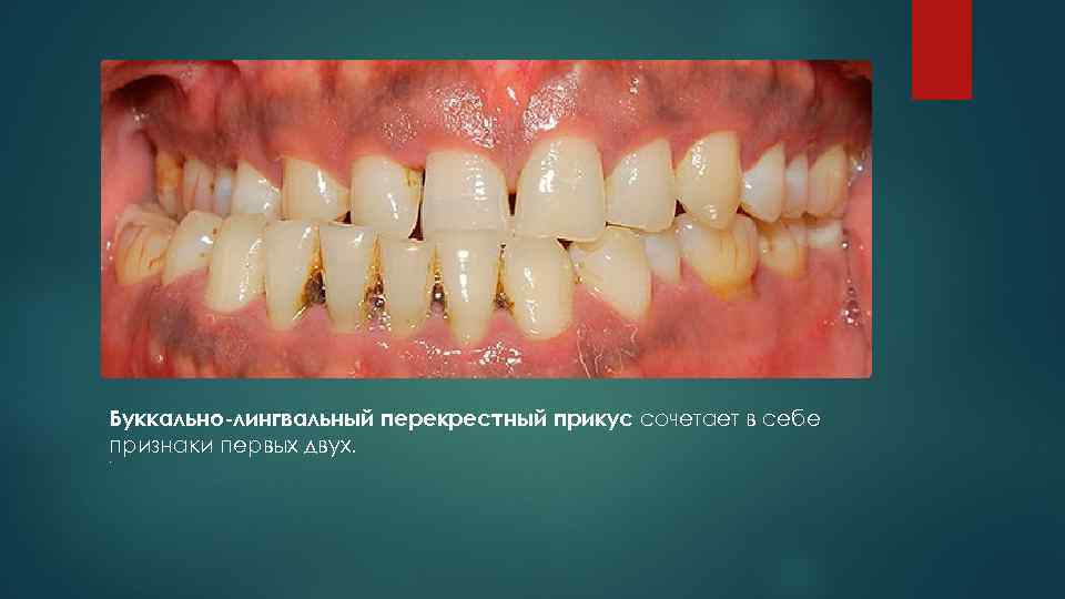 Буккально-лингвальный перекрестный прикус сочетает в себе признаки первых двух. .