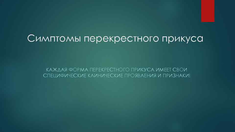 Симптомы перекрестного прикуса КАЖДАЯ ФОРМА ПЕРЕКРЕСТНОГО ПРИКУСА ИМЕЕТ СВОИ СПЕЦИФИЧЕСКИЕ КЛИНИЧЕСКИЕ ПРОЯВЛЕНИЯ И ПРИЗНАКИ!