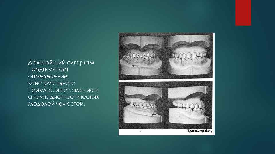 Дальнейший алгоритм предполагает определение конструктивного прикуса, изготовление и анализ диагностических моделей челюстей, .