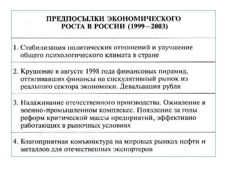 • К 1998 г. реальный ВВП 57 % от уровня 1990 г. • Долг рос. 1997 г. –международный финансовый кризис –инвесторы перестали вкладывать деньги в Россию • Резкое падение цен на нефть 10 дол. за баррель, что делало российский экспорт нерентабельным.