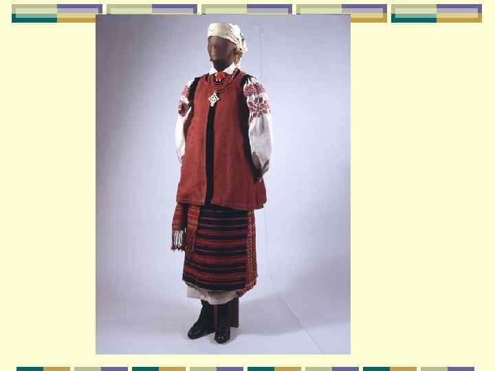 Костюм молодой женщины праздничный. Вторая половина XIX в. Тульская губерния Самая характерная черта русского народного искусства во всех его видах- радость, праздничность. Наши далекие предки никогда не появлялись в праздник в одинаковой одежде.