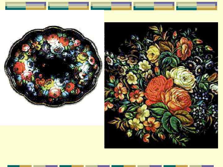 ХОХЛОМСКАЯ РОСПИСЬ, русский народный художественный промысел; возник в 17 в. Название происходит от с. Хохлома (Нижегородская обл. ). Декоративная роспись на деревянных изделиях (посуда, мебель) отличается тонким растительным узором, выполненным красным и черным (реже зеленым) тонами и золотом по золотистому фону.