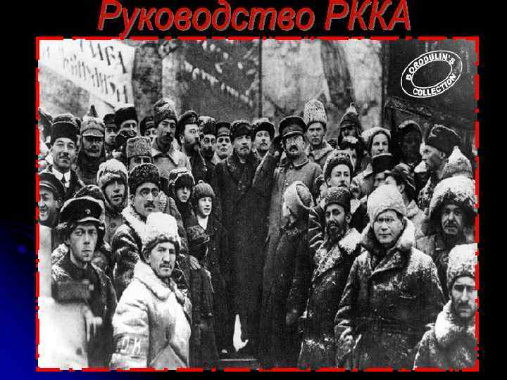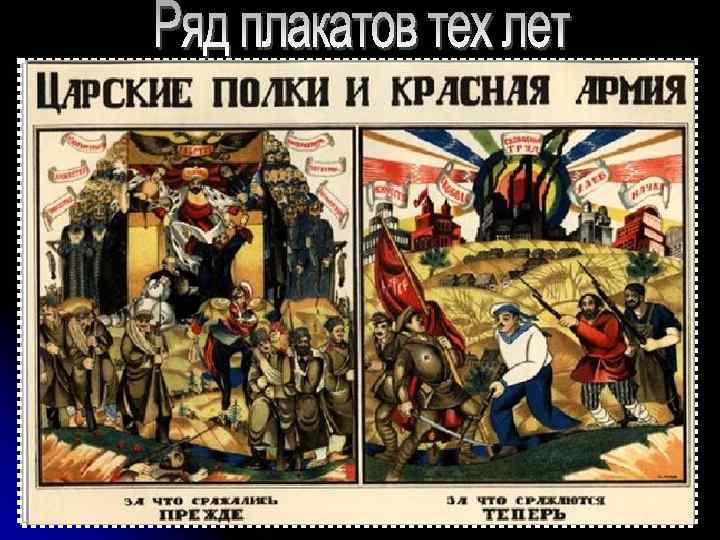 l Основная вооружённая борьба за власть в период Гражданской войны велась между Красной Армией (РККА) большевиков и вооружёнными силами Белого движения, что получило отражение в устойчивом именовании главных сторон конфликта «красными» и «белыми» . Обе стороны на период до полной своей победы и умиротворения страны предполагали осуществлять политическую власть путём диктатуры. Дальнейшие цели провозглашались следующие: со стороны красных — построение бесклассового коммунистического общества, как в России, так и в Европе путём активной поддержки мировой революции; со стороны белых — созыв нового Учредительного собрания, с передачей на его усмотрение решения вопроса о политическом устройстве России. Составной частью гражданской войны была вооружённая борьба национальных окраин бывшей Российской империи за свою независимость и повстанческое движение широких слоёв населения против войск основных противоборствующих сторон — «красных» и «белых» .