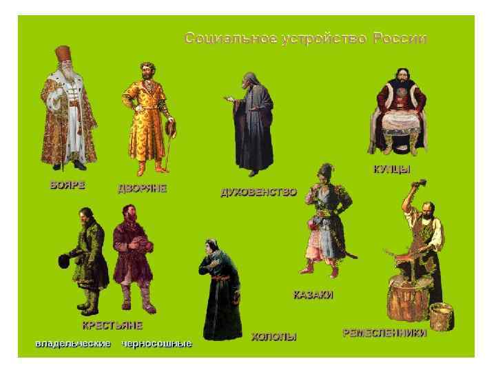Основные направления сословной политики • Все сословия поставлены на службу государству (есть даже теория «закрепощения сословий» ), государство – высшая ценность • Ликвидируются различия внутри высшего сословия, которое называется дворянством (а их земли - поместьями). Принцип родовитости при занятии должностей окончательно заменяется личной выслугой • Ужесточение крепостничества и эксплуатации крестьян