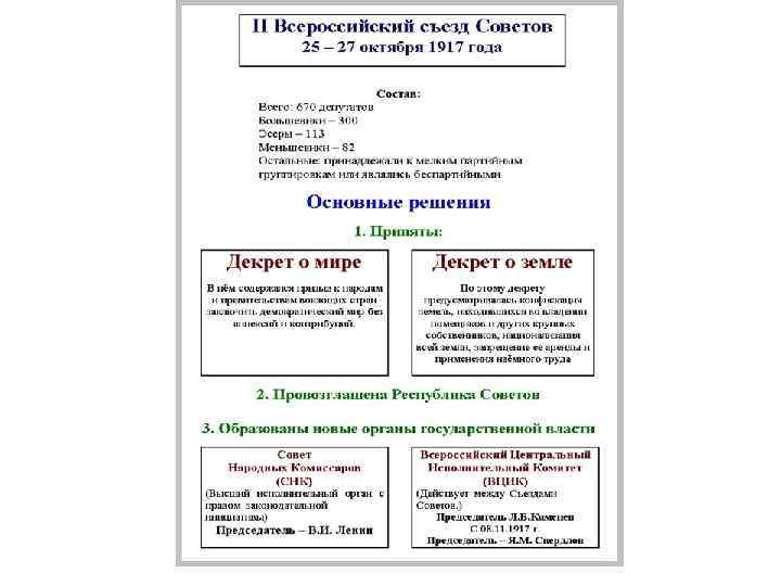 Становление Советской власти • • • Начало национализации экономики Признание права наций на самоопределение Запрет партии кадетов, введение цензуры 20 декабря 1917 г. – создание ВЧК 5 -6 января 1918 г. – созыв и разгон Учредительного собрания • 10 января 1918 г. – принятие «Декларации прав трудящегося и эксплуатируемого народа»