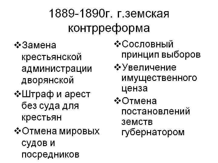 Сенатские ревизии показали, что причиной недовольства являются: а) малоземелье крестьян, б) разорительность выкупных платежей, в) неучастие общества в решении государственных задач. Составил проект о созыве законосовещательных комиссий общероссийское представительство.