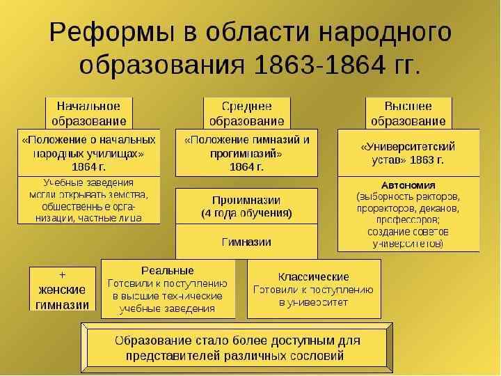 Земская реформа 1864 года вопросы начального образования, медицины и ветеринарного обслуживания, местного хозяйства, взыскание налогов, утверждение бюджета поручались выборным учреждениям — земским управам