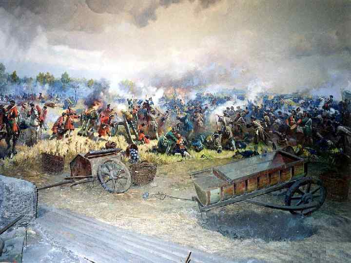 • 28 сентября 1708 г. – сражение у д. Лесной (шведы потеряли 8 тыс. убитыми, весь обоз). • 27 июня 1709 г. – Полтавская битва. (102 орудия у русских – против 39 шведских) Потери: Шведы – более 8 тысяч Русские - 1345