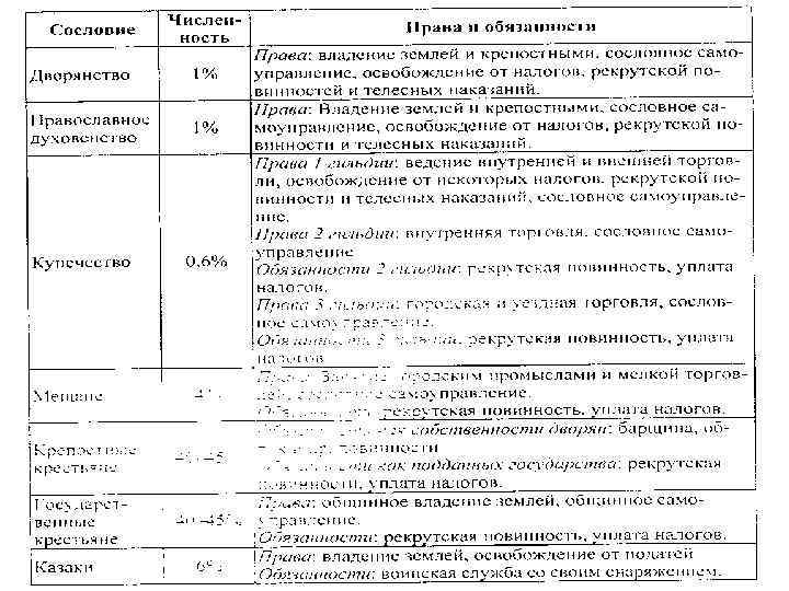 Сословия Дворянство Численность 1% Православное духовенство 1% Купечество 0, 6% Мещане 4% Крепостные крестьяне Государственные крестьяне Казаки 40 -45% 6% Права Обязанности