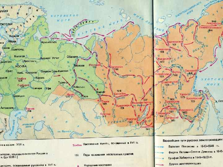 Территория и население Ø Землепроходцы Ø С. И. Дежнев открыл пролив между Азией и Америкой (1648 г. ) Ø В. Д. Поярков составил первое подробное описание Приамурья (1643 -1646 гг. ) Ø Е. П. Хабаров продолжил исследование Приамурья Ø Города-остроги: Томск (1604), Кузнецк (1617), Енисейск (1618), Красноярск (1628), Братск (1631), Якутск (1632), Иркутск (1652).
