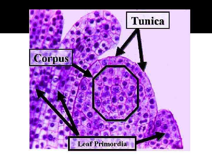 Полярность в меристемах Меристематическая клетка поляризована благодаря своему положению: у нее есть верх и низ. Если деление пройдет перпендикулярно оси полярности, то, несмотря на одинаковое распределение наследственного материала (ДНК), дочерние клетки будут неодинаковыми по физиологическим и структурным особенностям, по факторам наследственности, расположенным в цитоплазме, и по веществам — гормонам, регулирующим активность генома.