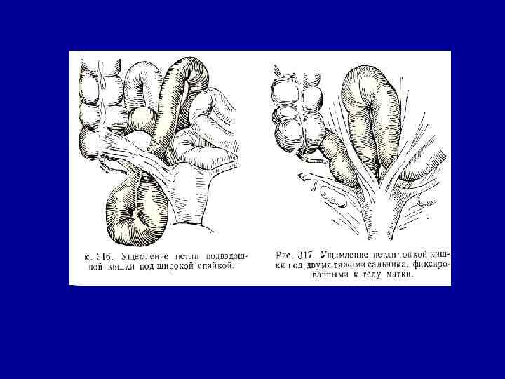 Этиология • Предрасполагающие причины - создание избыточной подвижности петель кишечника, или, наоборот, его фиксации: анатомо-морфологические изменения в желудочно-кишечном тракте – спайки, сращения способствующие патологическому положению кишечника, сужение и удлинение брыжейки, приводящие к чрезмерной подвижности кишечника, различные образования, исходящие из стенки кишки, соседних органов или находящиеся в просвете кишечника, карманы брюшины и отверстия в брыжейке, нарушение функционального состояния кишечника в результате длительного голодания. • Производящие причины: изменение моторной функции кишечника с преобладанием спазма или пареза его мускулатуры, внезапное резкое повышение внутрибрюшного давления, перегрузку пищеварительного тракта обильной грубой пищей