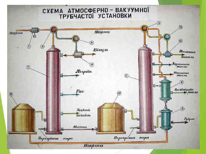 ОСНОВНІ ФРАКЦІЇ НАФТИ: - бензин - 40 -180 о. C; - гас - 180 -240 о. C; - газойль - 240 -360 о. C; - мазут - залишок перегонки.