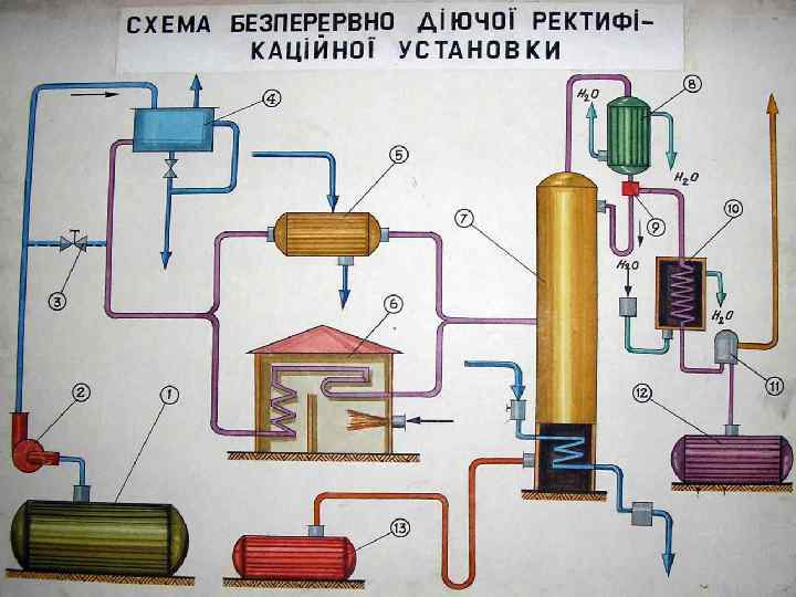 Ректифікаційна установка Пара 2 Флегма 1 Н 2 О 4 Суміш Пара 5 Залишок 3