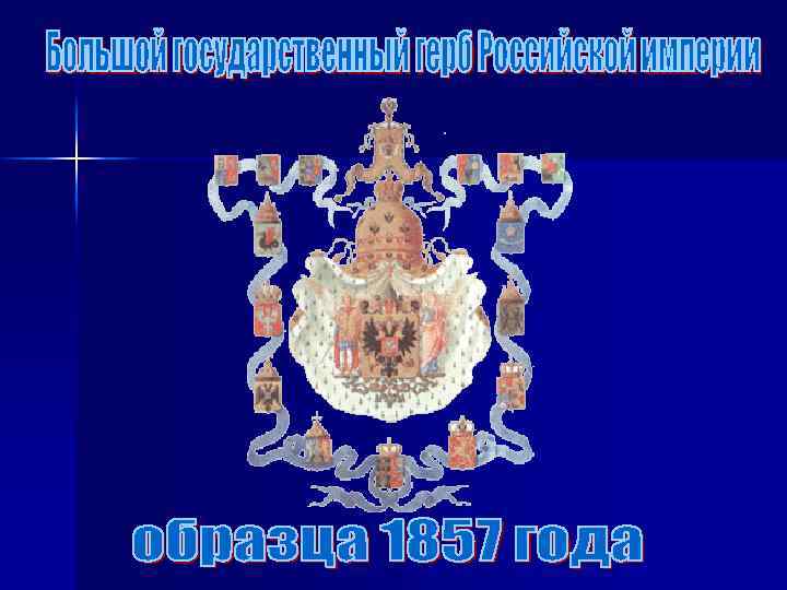 В декабре 1856 года в период царствования императора Александра II Освободителя был утвержден рисунок Малого герба России. Герб отличался от предшествующих не только изображением орла, но и так называемыми земельными гербами на крыльях.