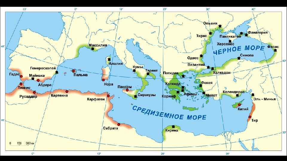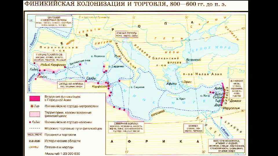 Северное море Остров Ирландия и алт Б е ско й Условные обозначения е ор м Владения финикийцев в Передней Азии Остров Великобритания Города-метрополии финикийцев Морские торговые пути финикийцев Азовское море Черное море Рим остров Корсика Пиренейский полуостров Балеарские острова Апеннинский полуостров Балканский полуостров Греция остров Сардиния Афины Карфаген Берега, захваченные и колонизированные финикийцами Рим полуостров Малая Азия Междуречье остров Сицилия Средиземное море река Тигр остров Крит остров Кипр Арвад Библ Сидон Тир Иерусалим Египет Нил река Мемфис Города-колонии финикийцев река Евфрат Карфаген – важнейшая колония финикийцев