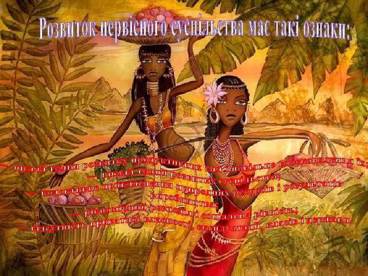 У цілому господарство первісної доби мало натуральний характер. Головною господарською формою цього часу була громада – колектив із повною або частковою спільною власністю на засоби виробництва та узвичаєними формами самоуправління. Вдосконалення знарядь праці, суспільний поділ праці, а також торгівля привели до розкладу первісної господарської системи. Відбувається поступовий перехід від родової до сусідської, територіальної громади. Створюються передумови для виникнення державних утворень – центрів світової цивілізації.