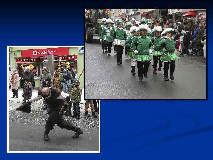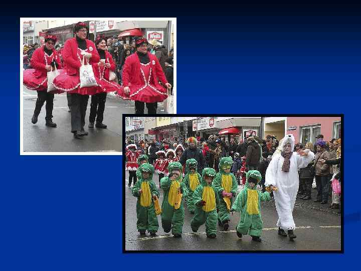 n Те, кто не принял участие в шествии, также надевают карнавальные костюмы или же вносят в свой гардероб детали, свидетельствующие об их участии в празднике. Демонстранты бросают в толпу конфеты.