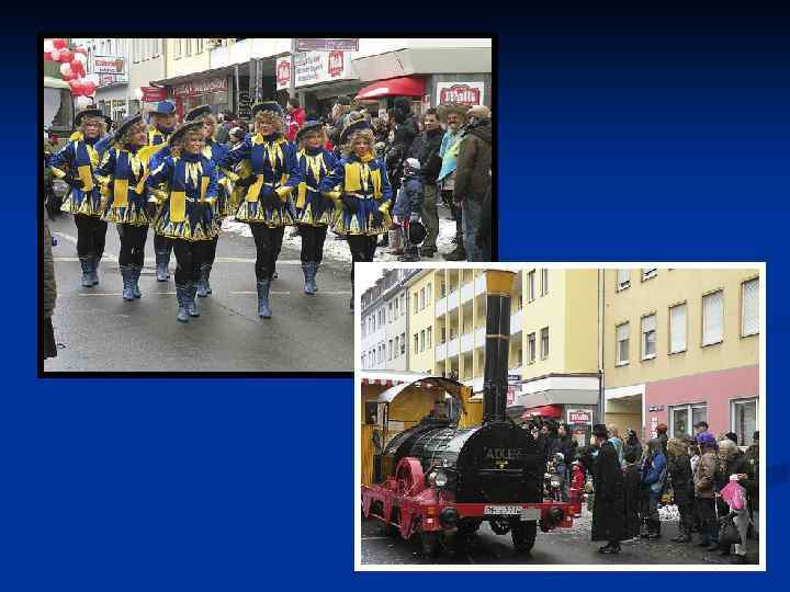 Розовый понедельник в Нюрнберге n В этот день некоторые центральные улицы города закрываются для движения. На пути следования карнавального шествия устанавливаются кареты скорой помощи, а на местах, где по прошлому опыту намечается наибольшее скопление зрителей, устанавливаются ограждения из полосатой ленты.