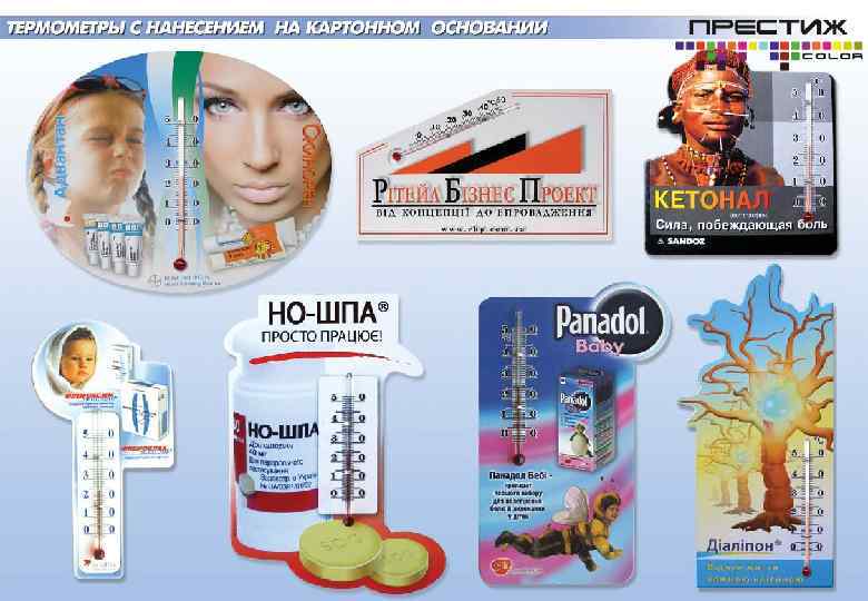 РПК «Престиж-Колор» предлагает Вам изготовление термометров с нанесением Вашего логотипа. Их можно использовать при проведении презентаций, выставок, рекламных акций, а также дарить деловым партнерам и клиентам. Преимущество термометров с логотипом - это оригинальность и функциональность. Термометры не являются расходным материалом, поэтому долгое время прослужат Вашим партнерам и клиентам, напоминая о Вашей компании. НАДЕЕМСЯ, ЧТО НАШЕ ПРЕДЛОЖЕНИЕ СТАНЕТ ДЛЯ ВАС ИНТЕРЕСНЫМ!