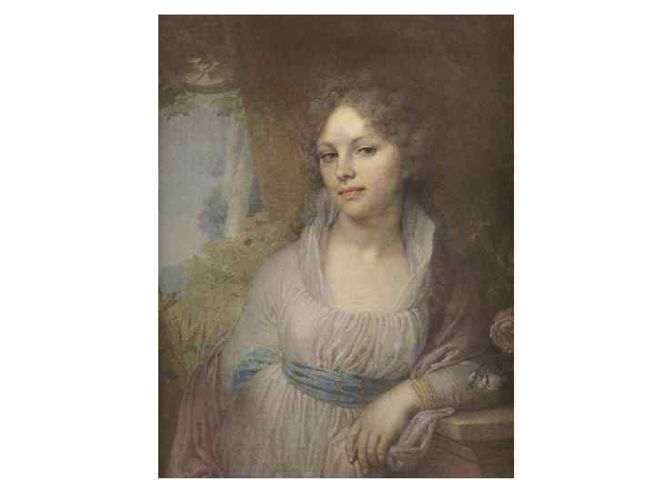 Владимир Лукич Боровиковский (1757 – 1825) Ее глаза – как два тумана, Полуулыбка, полуплач. Ее глаза – как два обмана, Покрыты мглою неудач. Соединенье двух загадок, Полувосторг, полуиспуг, Безумной нежности припадок, Предвосхищенье смертных мук…. Н. А. Заболоцкий Портрет М. И. Лопухиной