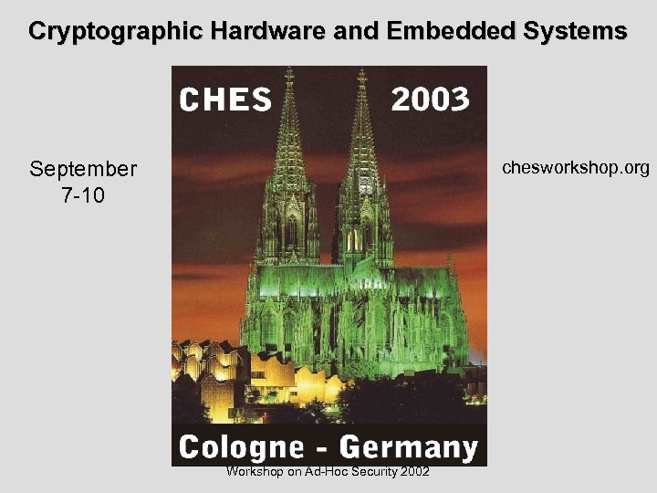 Cryptographic Hardware and Embedded Systems chesworkshop. org September 7 -10 Workshop on Ad-Hoc Security 2002