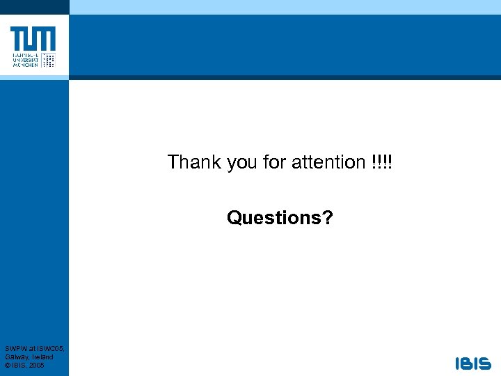 Thank you for attention !!!! Questions? SWPW at ISWC 05, Galway, Ireland © IBIS, 2005