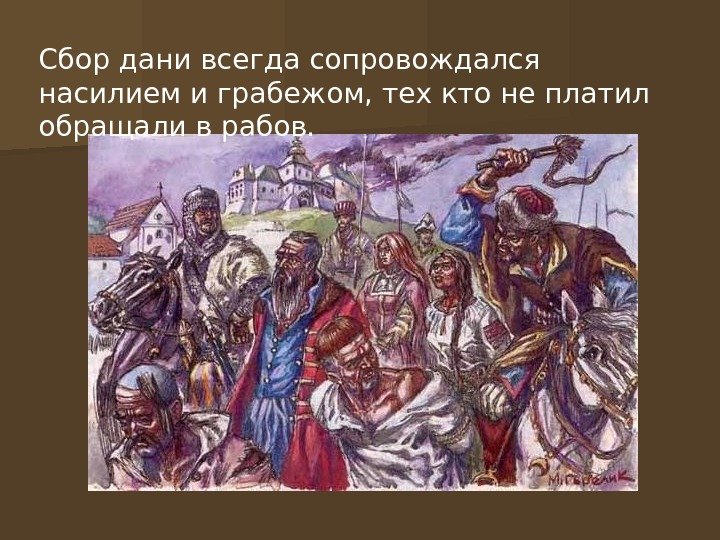 Сбор дани всегда сопровождался насилием и грабежом, тех кто не платил обращали в рабов.