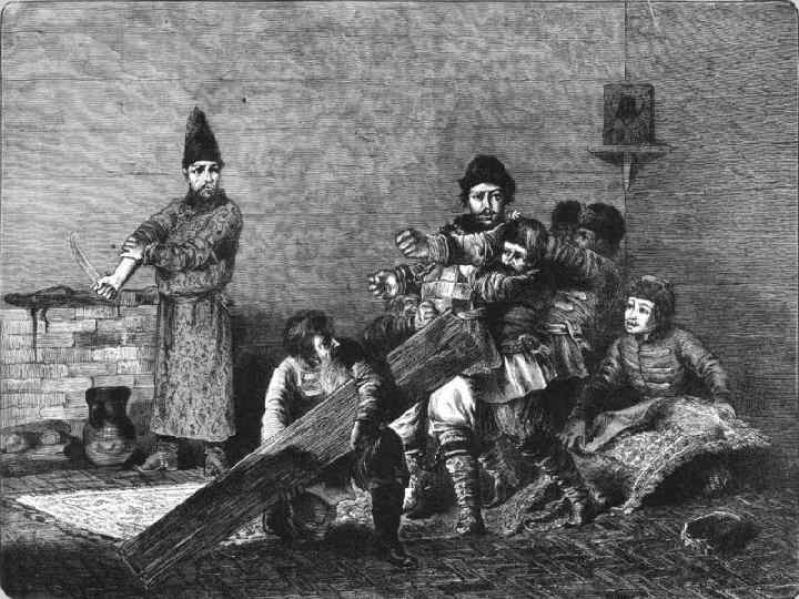Схватки с половцами В 1095 г. половцы снова Ночью из Переяславля тайно вышел вооруженный пришли на Русь и осадили Переяславль, зная, что отряд. Дружина обрушилась на ничего не Владимир еще не успел подозревавших половцев. собрать новое войско. Хан Китан был убит, его Половцы требовали огромный выкуп в обмен на войско рассеяно. Наутро княжеские воины мир. Мономах согласился на переговоры и пригласил приготовили для половцев Итларя специальную избу, а хана Итларя в Переяславль. затаившиеся на чердаке Половецкое войско во воины принялись стрелять в главе с ханом Китаном половцев из луков. Стрела раскинуло лагерь поразила и самого Итларя. неподалеку от города.