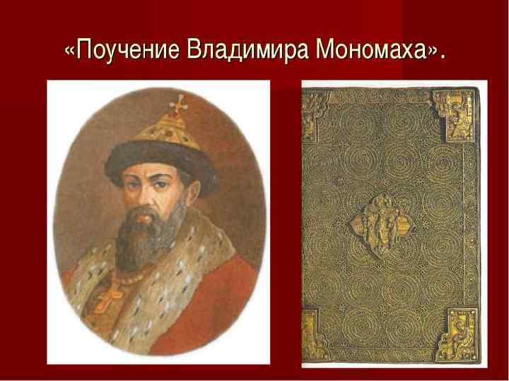 Как вы понимаете утверждение, что великий князь в политической борьбе использовал «не только меч рыцаря, но и перо писателя» ? «Пожалуй, ни об одном из деятелей Киевской Руси не сохранилось столь ярких воспоминаний, как о Владимире Мономахе. Его вспоминали и во дворцах. И в крестьянских избах спустя много веков. Народ сложил о нем былины как о победителе грозного половецкого хана Тугоркана. Неудивительно, что в мрачные годы усобиц русские люди искали утешения в своем величественном прошлом; их взгляды обращались к эпохе Владимира Мономаха. Владимир получил хорошее образование, которое позволило ему в своей политической борьбе использовать не только меч рыцаря, но и перо писателя» . Б. А. Рыбаков