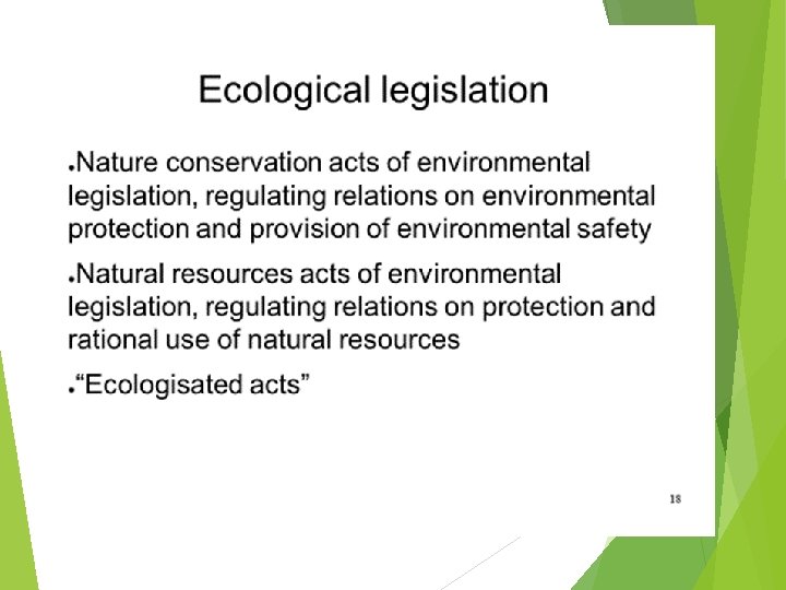Environmental law Ecological law “ecological legislation” is not a legal term, it is not fixed normatively
