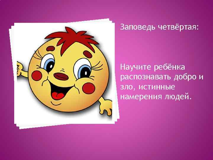 Заповедь четвёртая: Научите ребёнка распознавать добро и зло, истинные намерения людей.